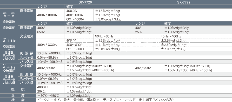 - 配备可连接到示波器或记录仪的输出端子。(仅限 SK-7722)