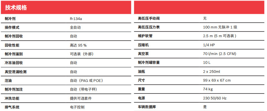 > 可选配空调系统冲洗套件、制冷剂分析仪等配件